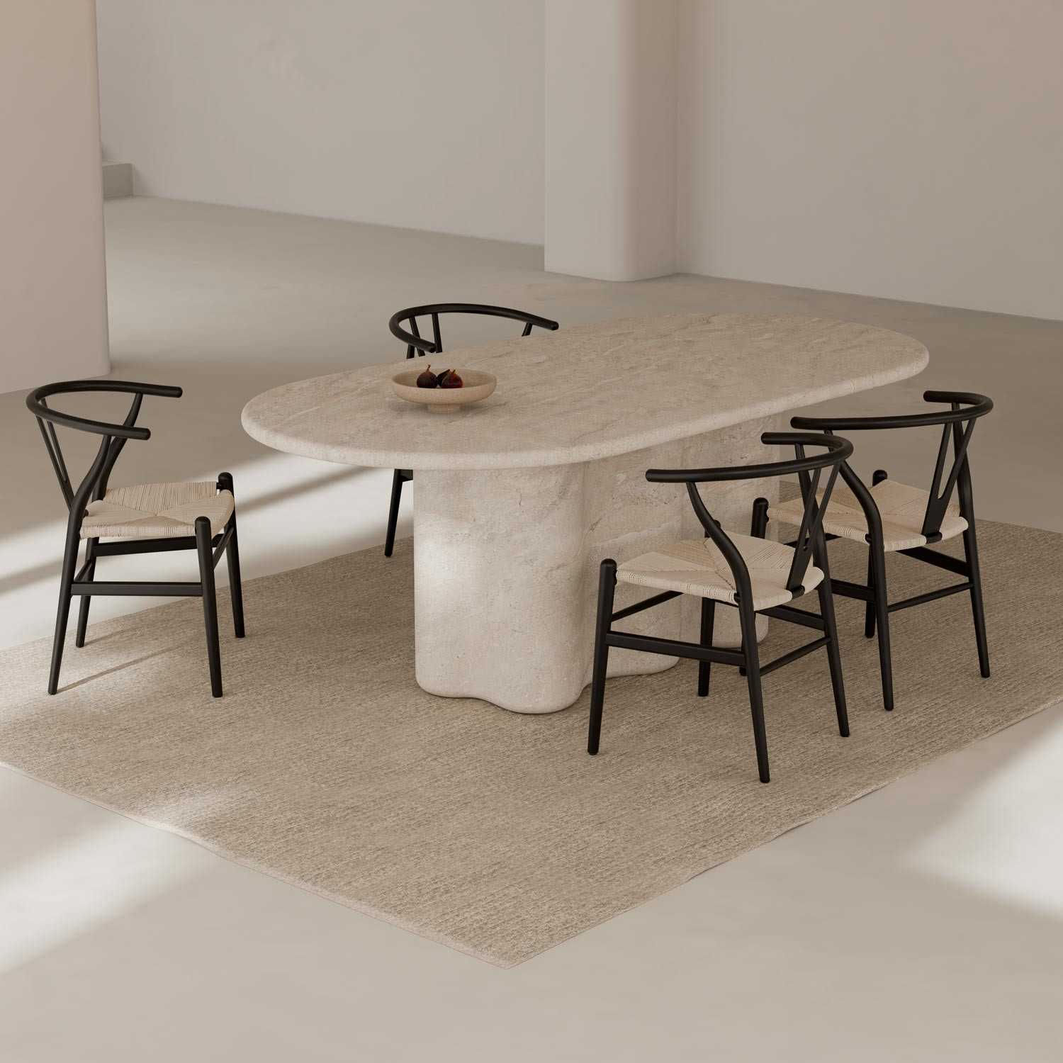 The Lorraine Dining Table is a sculptural statement piece of contemporary design, crafted entirely from cement with a refined travertine marble-effect finish. Its organic curves and solid form exude both strength and sophistication, while the travertine texture adds warmth and natural depth. With generous proportions, the Lorraine becomes the undeniable centerpiece of any dining space.