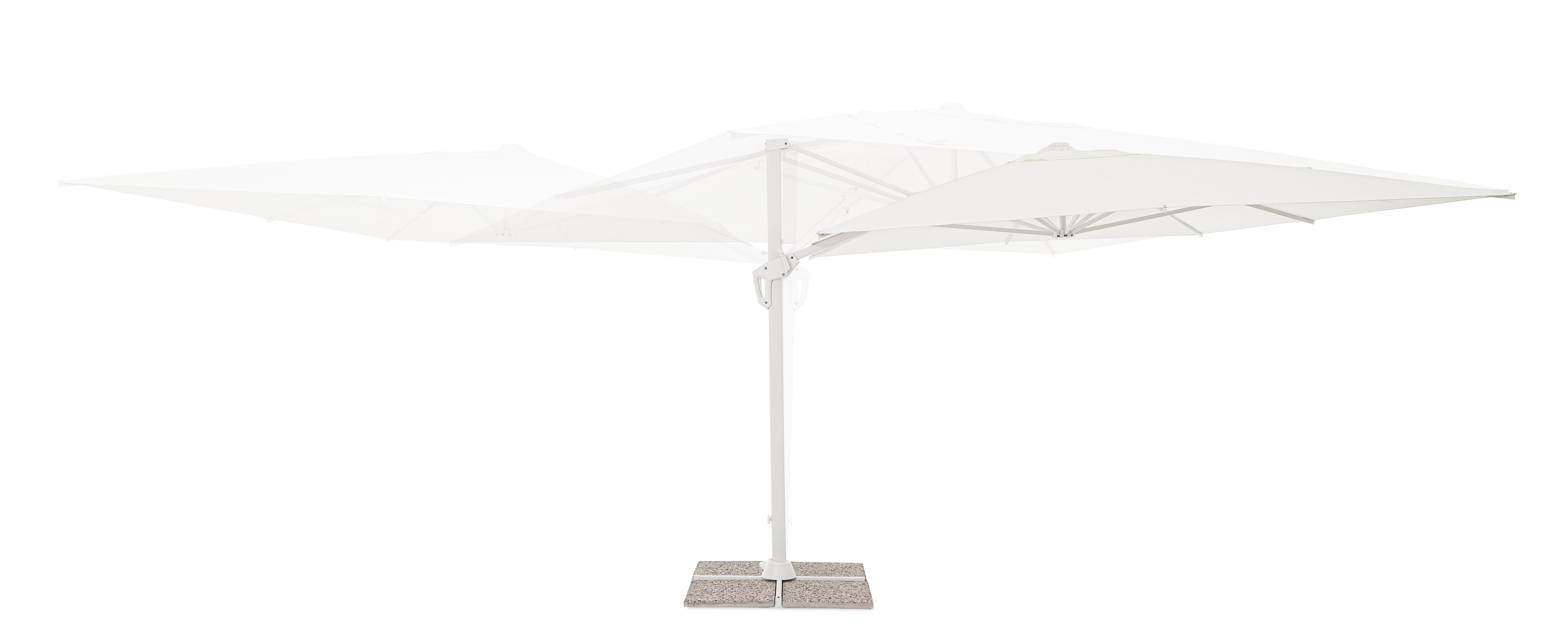 The Vega Parasol is a perfect addition to your outdoor space, combining functionality with elegance. Designed with a sturdy powder-coated aluminum frame and a sleek white cover, this parasol offers excellent shade and style. Featuring a 360° rotating pole with a convenient pedal and a vertical tilt with a 5-position handle, it allows for easy adjustments to protect you from the sun all day long. The parasol comes with a steel cross base, cement tiles are not included! We recommend using two or more sets of cement base tiles for secure installation.