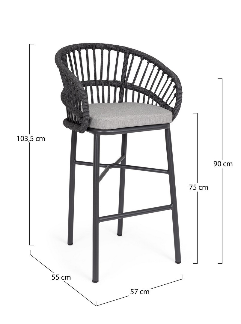 The Odivelas Bar Stool combines contemporary design with exceptional outdoor durability, making it a perfect choice for modern patios, poolside bars, or terraces. Its aluminum frame ensures strength and resistance against the elements, while the meticulously handwoven rope detailing creates a sophisticated and airy look.