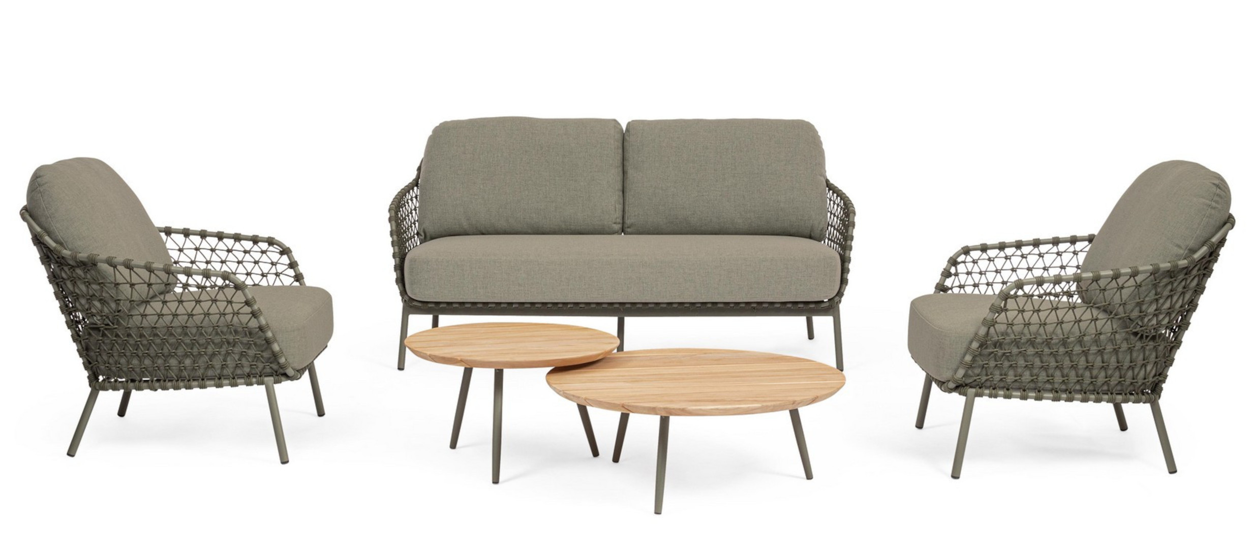 The Ivissa Sofa Set effortlessly combines modern design, premium materials, and natural elements, making it an ideal addition to any outdoor living space. Featuring elegant rope weaving designed for outdoor durability, the set’s structure ensures both visual appeal and strength. The removable cushions, upholstered in water-repellent Sunproof Olefin fabric, offer exceptional comfort while being weather-resistant and easy to maintain. Two center tables crafted from SVLK-certified teak wood complement the design, adding a natural and sustainable touch. With its balanced proportions and sophisticated look, the Ivissa Sofa Set is perfect for relaxing, entertaining, or enhancing a stylish patio setting.
