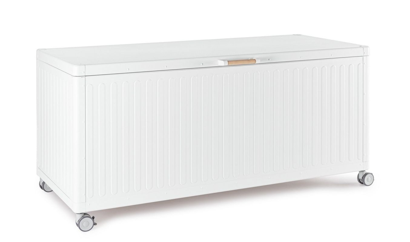 The Ocean White Chest combines functionality and refined outdoor style, offering an elegant solution for storing cushions and accessories. Crafted from durable aluminium, this storage chest is designed to withstand the elements while maintaining a sleek, contemporary appearance in a soft white finish. Equipped with gas pistons for smooth opening and closing, and lockable wheels for easy mobility, the Ocean White Chest ensures both practicality and elegance. Its generous storage capacity makes it the perfect complement to any outdoor lounge or dining area.